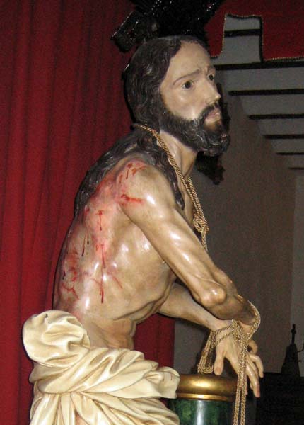 Festividad de nuestra señora del carmen. El colateral es un retablo gemelo al del cristo de la caña, también de alonso de manzano que cobija la imagen de cristo atado a la columna de gregorio fernández. Cristo atado a la columna. 1 en el testero del crucero se localzia un hueco donde se guarda el paso de la entrada triunfal de jesús en jerusalén, conocido popularmente como el paso de la borriquilla. Tras un solemne quinario el santísimo cristo a la columna, la devoción cristífera más importante de esta villa, el primer domingo de julio, al atardecer, vuelve a recorrer las empinadas calles del casco histórico orotavense.